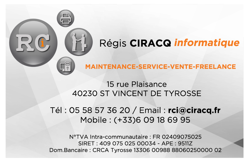 Régis Ciracq Informatique intervient sur site ou en ses locaux pour l’entretien, la réparation ou le remplacement de votre ordinateur, fixe ou portable, imprimante…